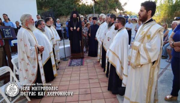 Το εσπέρας της Παρασκευής 24 Ιουλίου ο Σεβ. Μητροπολίτης Πέτρας και Χερρονήσου κ. Γεράσιμος χοροστάτησε στον πανηγυρικό Εσπερινό που τελέσθηκε επί τη Εορτή της Κοιμήσεως της Αγίας Άννης, στον φερώνυμο Ιερό Ναό Ενορίας Πισκοπιανού Χερσονήσου. Κατά την διάρκεια της Ακολουθίας εκτίθετο προς προσκύνηση τμήμα του ιερού λειψάνου της Αγίας Άννης.
