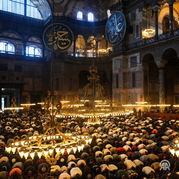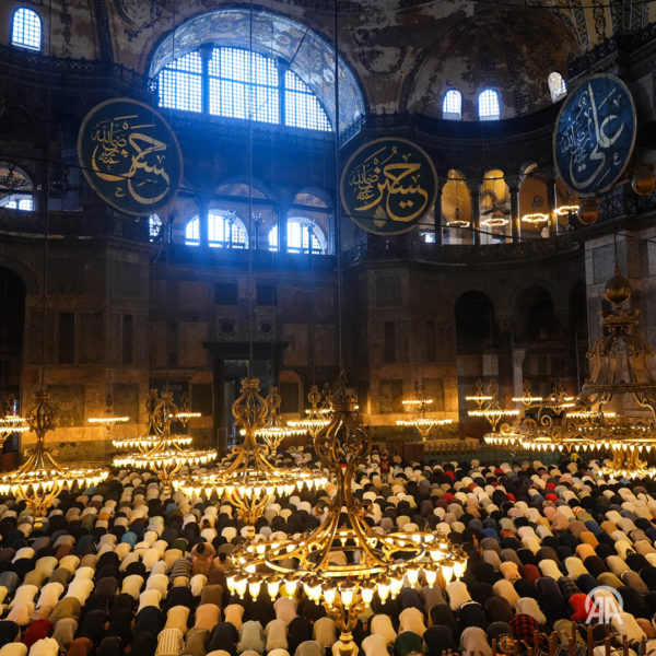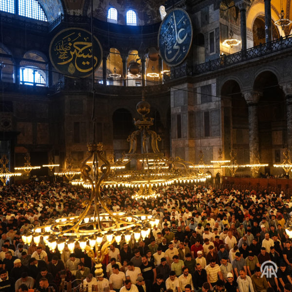 Από νωρίς το πρωί, πλήθος πιστών και επισκεπτών συγκεντρώθηκε στα μεγάλα τεμένη, με ιδιαίτερη κοσμοσυρροή να σημειώνεται στον ιστορικό ναό της Αγίας Σοφίας στην Κωνσταντινούπολη, ο οποίος, ως γνωστόν, λειτουργεί πλέον ως μουσουλμανικό τέμενος.