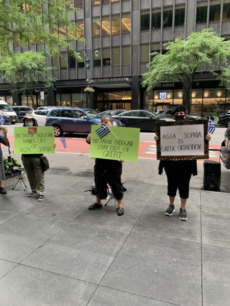 Συμβολική συγκέντρωση διαμαρτυρίας έξω από το Τουρκικό Προξενείο, στο Μανχάτταν, πραγματοποίησε ομάδα ομογενών το απόγευμα της Παρασκευής, με αντικείμενο την μετατροπή της Αγίας Σοφίας σε τζαμί.