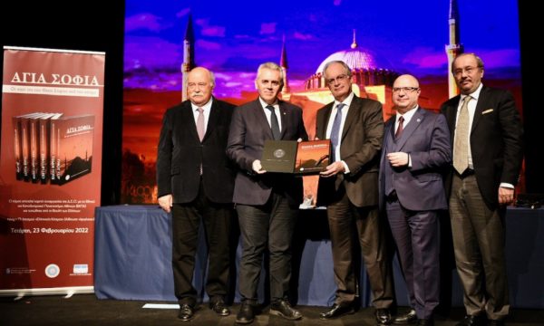 «Είμαι ιδιαίτερα ευτυχής, τολμώ να πω υπερήφανος, γιατί μετά από πολύμηνη και κοπιώδη προσπάθεια φτάσαμε σε αυτή την ξεχωριστή ημέρα, κατά την οποία σας παρουσιάζουμε σήμερα εδώ, στον φιλόξενο χώρο του Ιδρύματος Μείζονος Ελληνισμού, της οικογενείας Εφραίμογλου, την οποία και ευχαριστούμε θερμά, μια πολύτιμη, από πολλές απόψεις, έκδοση της Διακοινοβουλευτικής Συνέλευσης Ορθοδοξίας. Ο Τόμος “Αγία Σοφία: Οι ναοί της του Θεού Σοφίας ανά τον κόσμο”, είναι ένα τρόπον τινά “ταμείο σοφίας” στο οποίο περιλαμβάνονται 37 Ναοί, αφιερωμένοι στην Αγία του Θεού Σοφία. Ναοί εμβληματικοί, που απλώνονται σε μια τεράστια ακτίνα, με το ένα άκρο στις βρετανικές νήσους και τον Ατλαντικό Ωκεανό και το άλλο στην μακρινή Κίνα. Με κέντρο, βεβαίως, αυτού του νοητού άξονος -που αποτυπώνει και το εύρος επιρροής του βυζαντινού πολιτισμού- την πλέον φημισμένη, την πλέον λαμπρή και ένδοξη Αγία Σοφία- την Αγιά Σοφιά της Πόλης. Σύμβολο κραταιό της Ανατολικής Ρωμαϊκής Αυτοκρατορίας, φάρος διαχρονικός της Οικουμενικής Ορθοδοξίας».