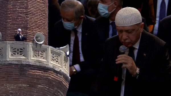 Μπροστάρη στα όσα διαδραματίστηκαν στην Αγία Σοφία ήταν ο διαρκώς προκλητικό πρόεδρο Ερντογάν, ο οποίος λίγο μετά τις 12 το μεσημέρι της Παρασκευής έφτασε στην Αγία Σοφία προκειμένου να συμμετάσχει στην πρώτη μουσουλμανική προσευχή που σηματοδότησε τη μετατροπή της Αγιά Σοφιάς σε τέμενος, ενώ διάβασε το ισλαμικό κάλεσμα, το Αδδάν μέσα στην Αγία Σοφία.