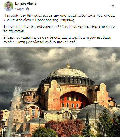 Στα θλιβερά γεγονότα που εκτυλίχθηκαν σήμερα στην Αγία Σοφία στην Κωνσταντινούπολη με τους Τούρκους να πραγματοποιούν μια εντυπωσιακή φιέστα – προσευχή, αναφέρθηκε με ανάρτησή του ο υφυπουργός Εξωτερικών Κώστας Βλάσης.