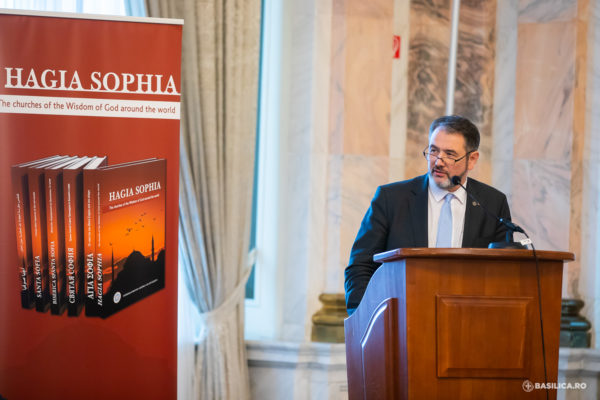 Σχετικά με την πρωτοβουλία για την έκδοση του Τόμου για τους Ναούς της Αγίας Σοφίας, ο επικεφαλής της ΔΣΟ επισήμανε το μεγάλο πρόβλημα που έχει προκύψει με την μετατροπή της Αγίας Σοφίας στην Κωνσταντινούπολη σε τζαμί, τονίζοντας ότι «επιστήμονες και ΜΜΕ της Τουρκίας αναφέρουν ότι αν δεν υπάρξει άμεσα παρέμβαση, με την εισροή καθημερινώς χιλιάδων επισκεπτών, το μνημείο θα έχει καταστραφεί μέχρι το 2050. Κι εδώ τίθεται το ερώτημα. Μπορούμε να επιτρέψουμε αυτή την εξέλιξη; Μπορούμε να παραμείνουμε αδρανείς σε μια τέτοια απρεπή συμπεριφορά; Ως ΔΣΟ έχουμε πάρει την απόφασή μας. Και προσπαθούμε να αφυπνίσουμε τη διεθνή κοινή γνώμη. Να συντονίσουμε τις ενέργειές μας. Θεσμοί, όπως η ΟΥΝΕΣΚΟ, κυβερνήσεις, κοινοβούλια, εκκλησιαστικές αρχές, η ακαδημαϊκή κοινότητα, η κοινωνία των πολιτών, έχουμε λόγο σε ό,τι συμβαίνει. Να αποδείξουμε ότι στον 21ο αιώνα δεν επιτρέπεται η επιστροφή σε μεσαιωνικές πρακτικές. Είμαστε βέβαιοι, ότι αυτή η έκκληση βρίσκει στην φιλόξενη Ρουμανία την απήχηση που της αρμόζει».