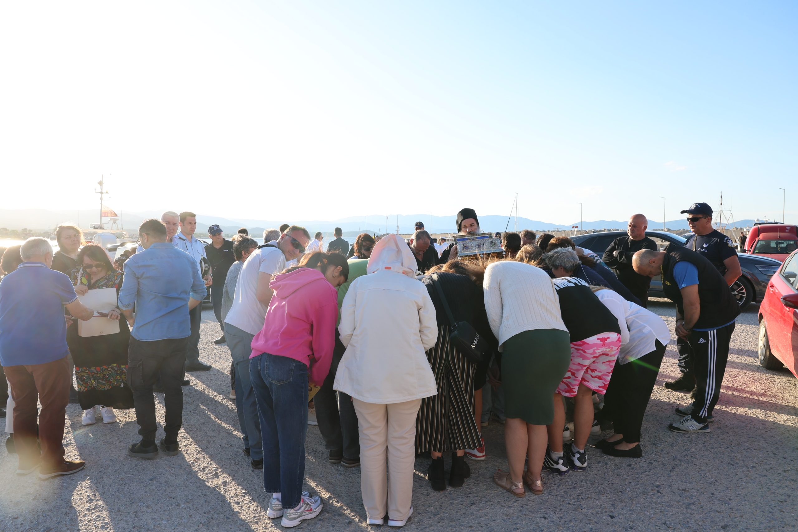 Μετά από ολιγόλεπτη στάση, ο Γέροντας Εφραίμ επιβιβάστηκε με την Αγία Ζώνη σε σκάφος του Λιμενικού Σώματος και αναχώρησε με προοριομό την Ιερά Μεγίστη Μονή Βατοπαιδίου.