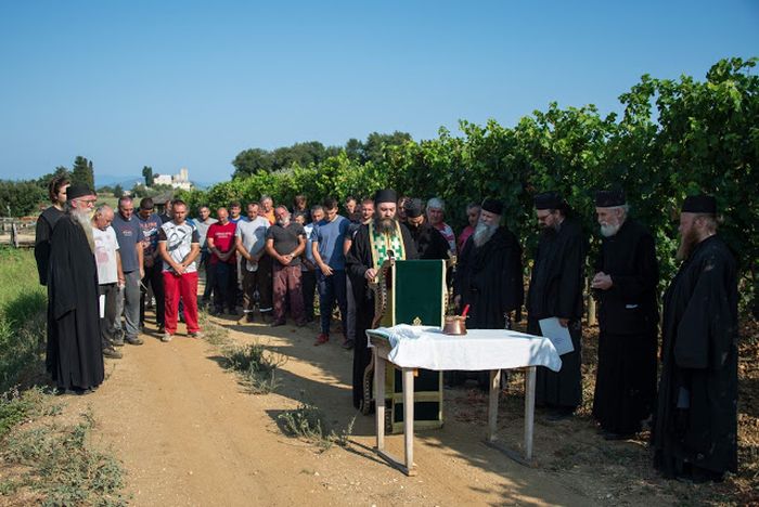 Με τον Αγιασμό στα χωράφια της Μονής, άρχισε η συγκομιδή των σταφυλιών στην Ιερά Μονή Χιλανδαρίου Αγίου Ορους.