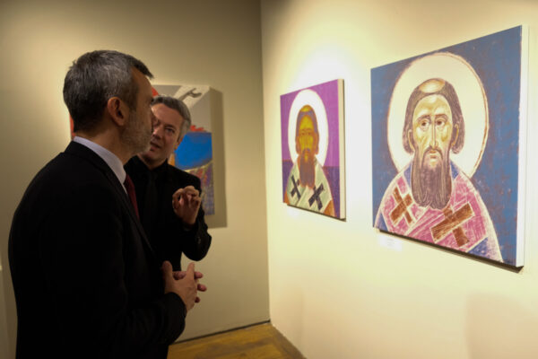 Ακολούθησε ξενάγηση στους χώρους της Έκθεσης όπου παρουσιάστηκαν έργα απο καταξιωμένους εικαστικούς και εργαστήρια αγιογραφίας όπου συμμετέχουν: το Αγιογραφικό εργαστήριο Ι. Κελλίου Αγίου Νικολάου Μπουραζέρι ● το Εργαστήριο Ιεράς Μονής Μακρινού ● το Εργαστήριο Ι. Κελλίου Αγίου Γρηγορίου Παλαμά ● ο Ιερομόναχος Αναστάσιος, Ι. Κουτλουμουσιανό Κελλί Τιμίου Προδρόμου – «Διονυσίου εκ Φουρνά» ● ο Γιώργος Κόρδης● ο Κωνσταντίνος Βαφειάδης ● ο Γιάννης Μαστερόπουλος● ο Ιερεμίας ● Miomir Bucalo● Aleksandar Deroko(†)● Lj. Djurdjević● Zoran Graovac ● Snezana Jovcic-Oldja● Goran Jovic● Miroslav Lazovic● Todor Mitrovic● Jovanović Pale● Branislav Petrić ● Vanya Sapundzieva ● Nicola Saric ● Svetislav Stanković. Διάρκεια έκθεσης: 5 Νοεμβρίου έως 14 Δεκεμβρίου 2019 Μέρες και ώρες λειτουργίας: Δευτέρα & Τετάρτη: 9:00 – 16:00, Τρίτη, Πέμπτη και Παρασκευή 9:00 – 20:00, και Σάββατο 9:00 – 14:00.