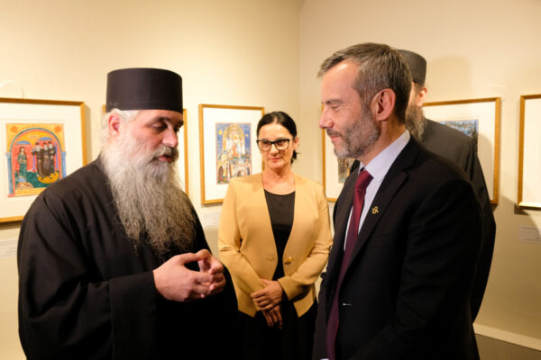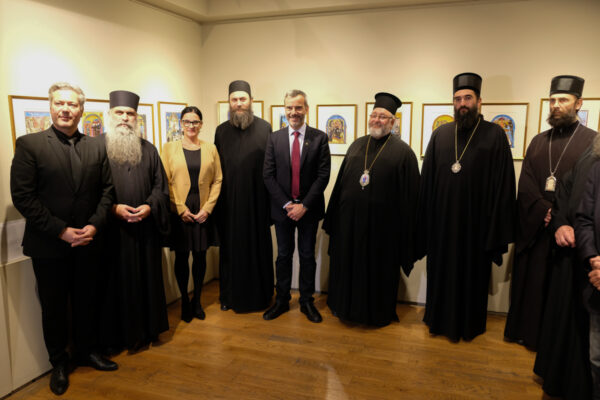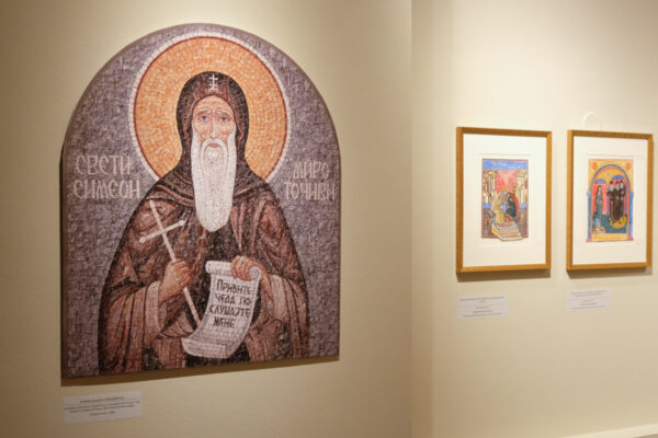 Ακολούθησε ξενάγηση στους χώρους της Έκθεσης όπου παρουσιάστηκαν έργα απο καταξιωμένους εικαστικούς και εργαστήρια αγιογραφίας όπου συμμετέχουν: το Αγιογραφικό εργαστήριο Ι. Κελλίου Αγίου Νικολάου Μπουραζέρι ● το Εργαστήριο Ιεράς Μονής Μακρινού ● το Εργαστήριο Ι. Κελλίου Αγίου Γρηγορίου Παλαμά ● ο Ιερομόναχος Αναστάσιος, Ι. Κουτλουμουσιανό Κελλί Τιμίου Προδρόμου – «Διονυσίου εκ Φουρνά» ● ο Γιώργος Κόρδης● ο Κωνσταντίνος Βαφειάδης ● ο Γιάννης Μαστερόπουλος● ο Ιερεμίας ● Miomir Bucalo● Aleksandar Deroko(†)● Lj. Djurdjević● Zoran Graovac ● Snezana Jovcic-Oldja● Goran Jovic● Miroslav Lazovic● Todor Mitrovic● Jovanović Pale● Branislav Petrić ● Vanya Sapundzieva ● Nicola Saric ● Svetislav Stanković. Διάρκεια έκθεσης: 5 Νοεμβρίου έως 14 Δεκεμβρίου 2019 Μέρες και ώρες λειτουργίας: Δευτέρα & Τετάρτη: 9:00 – 16:00, Τρίτη, Πέμπτη και Παρασκευή 9:00 – 20:00, και Σάββατο 9:00 – 14:00.