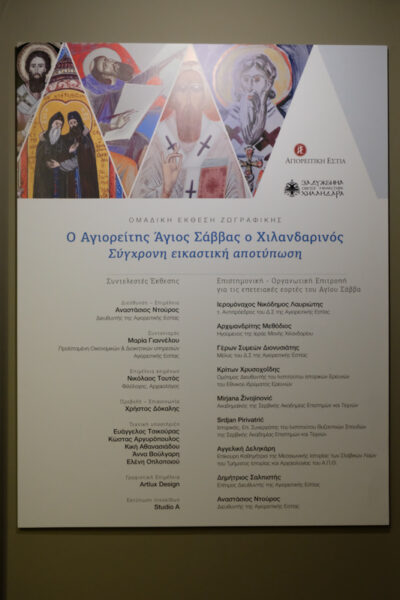 Με επιτυχία πραγματοποιήθηκαν σήμερα το απόγευμα στους χώρους της Αγιορείτικης Εστίας τα εγκαίνια της ομαδικής έκθεσης ζωγραφικής, σύγχρονων εικαστικών αποτυπώσεων με θέμα τον άγιο Σάββα τον Χιλανδαρινό.
