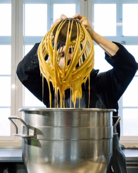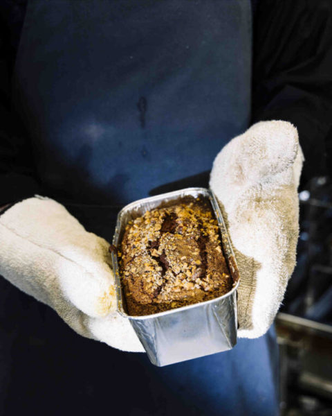 Ο πατέρας Φιλωνίδης ετοιμάζει το μείγμα για το κέικ με κολοκύθα – από τους κήπους της μονής.