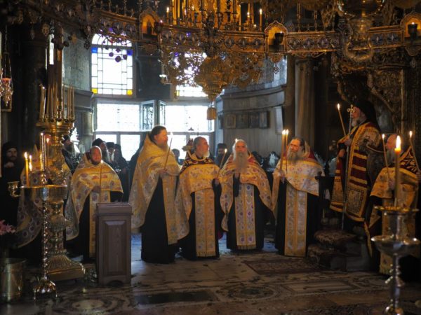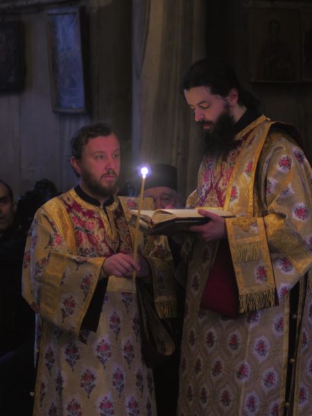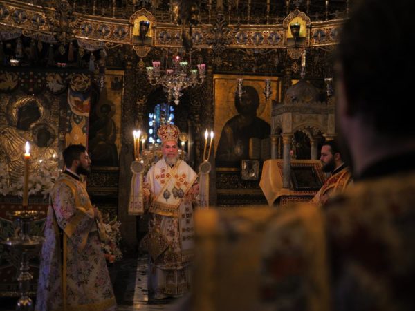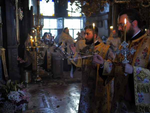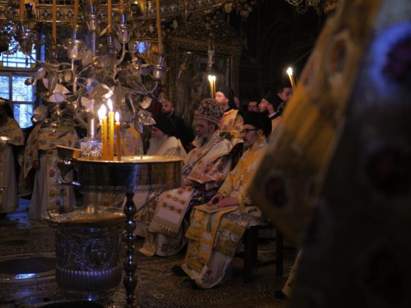 Κατά τη Θεία Λειτουργία συλλειτούργησαν μετά του Σεβασμιωτάτου Μητροπολίτη Σύμης κ. Χρυσοστόμου, ο Σεβασμιώτατος Μητροπολίτης Νέας Κρήνης και Καλαμαριάς κ. Ιουστίνος, ο Θεοφιλέστατος Επίσκοπος Παλμύρας κ. Ιωάννης, εκ του Πατριαρχείου Αντιοχείας, ο Καθηγούμενος της Ιεράς Πατριαρχικής και Σταυροπηγιακής Μονής των Ιβήρων, Πανοσιολ. Αρχιμανδρίτης Ναθαναήλ, καθώς επίσης Ιερομόναχοι και Διάκονοι από Μονές της Αθωνικής Πολιτείας.