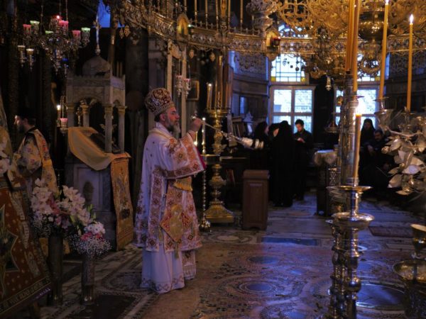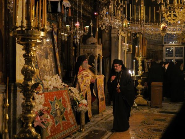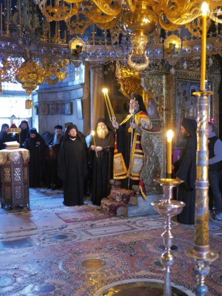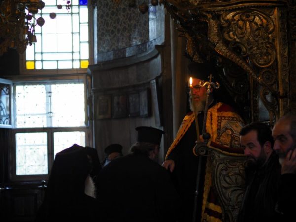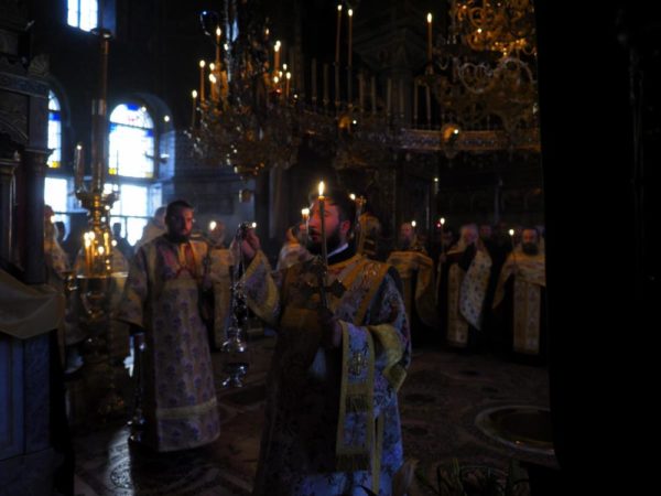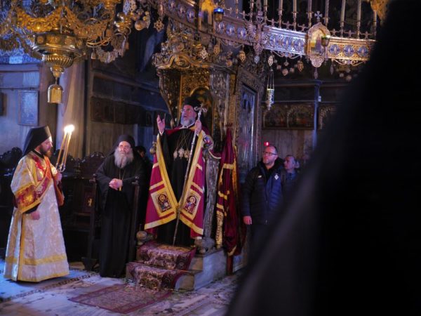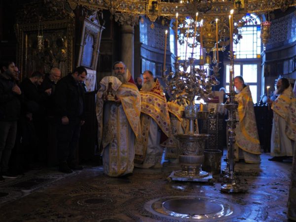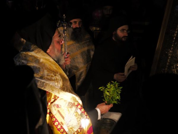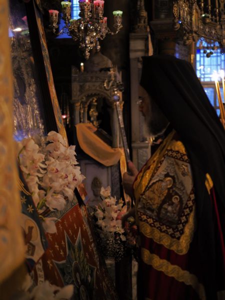 Τις πρώτες πρωινές ώρες, τελέστηκε η Ακολουθία του Πανηγυρικού Όρθρου και ο Αγιασμός στο Καθολικό της Ιεράς Μονής και εν συνεχεία ακολούθησε η Ιερά Λιτάνευση της Θαυματουργού Εικόνος της Παναγίας, συνοδεία των προσκυνητών στα κτήματα και στα παρεκκλήσια του Μοναστηριού, η οποία και κατέληξε στο Κάθισμα της Μονής, το Καθολικό του οποίου είναι ο μόνος Ιερός Ναός όπου τελείται η Θεία Λειτουργία, εκτός του Μοναστηριού, με την παρουσία της Εφεστίου εικόνος της Παναγίας.