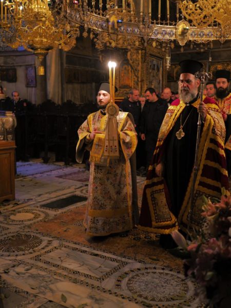 Ακολούθησε η Παραδοσιακή Αγιορειτική Πανηγυρική τράπεζα, κατά την διάρκεια της οποίας ακούσθηκαν επίκαιροι Αναστάσιμοι Λόγοι πνευματικής οικοδομής και ευχές, από τον Σεβασμιώτατο Μητροπολίτη κ. Χρυσόστομο.