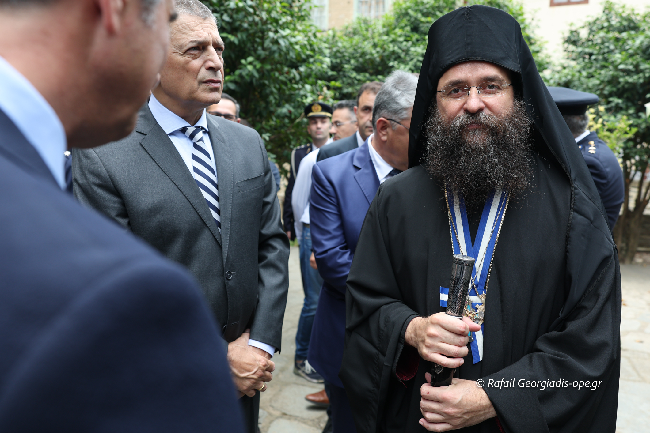 Την κυβέρνηση εκπροσώπησε ο Υπουργός Κλιματικής Κρίσης και Πολιτικής Προστασίας, Γιάννης Κεφαλογιάννης. Παρέστησαν επίσης, ο Υφυπουργός Εσωτερικών αρμόδιος για θέματα Μακεδονίας-Θράκης, Κωνσταντίνος Γκιουλέκας ως Πρόεδρος του ΚΕΔΑΚ, ο Δήμαρχος Θεσσαλονίκης, Στέλιος Αγγελούδης ως πρόεδρος της Αγιορείτικης Εστίας, ο διευθυντής της Αγιορείτικης Εστίας Αναστάσιος Ντούρος, ο Πολιτικός Διοικητής του Αγίου Όρους, Αλκιβιάδης Στεφανής και ο αναπληρωτής του, Αρίστος Κασμίρογλου, καθώς και οι αρχές από το Περιβόλι της Παναγίας. Το «παρών» έδωσε και ο πρόεδρος του κόμματος «Νίκη», Δημήτρης Νατσιός.