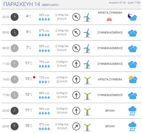 Οι καιρικές συνθήκες των επομένων τριών ημερών, 14, 15, 16 Φεβρουαρίου 2020, όπως αυτές προβλέπονται απο τον αρμόδιο μετεωρολογικό ιστοτόπο METEO.GR για τη Χερρσόνησο του Άθω. Συννεφιασμένος κυρίως, αλλά και βροχερός αναμένεται ο καιρός για τις επόμενες ημέρες, με ελάχιστα διαλείμματα ηλίου.