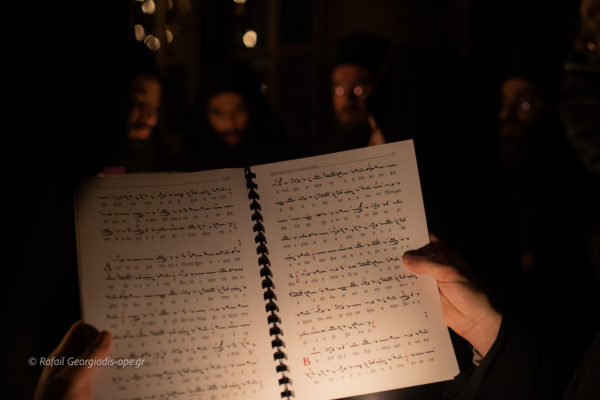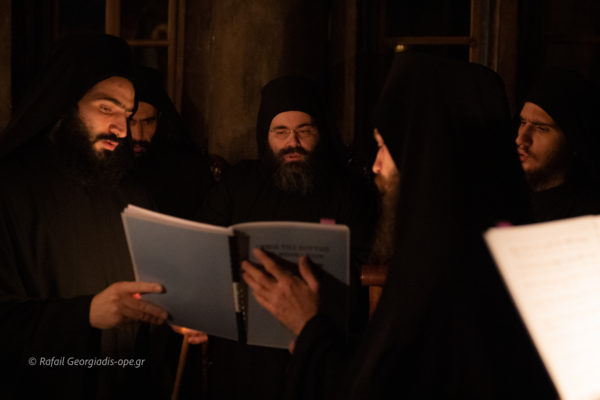 Τους χορούς των αναλογίων πλαισιώνουν Βατοπαιδινοί πατέρες μαζί με τον Μουσικοδιδάσκαλο κ. Γεώργιο Κωνσταντίνου.