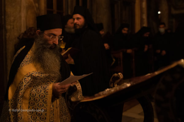Των Ιερών ακολουθιών προεξάρχει ο Καθηγούμενος της Ιεράς Μονής Γέρων Εφραίμ.