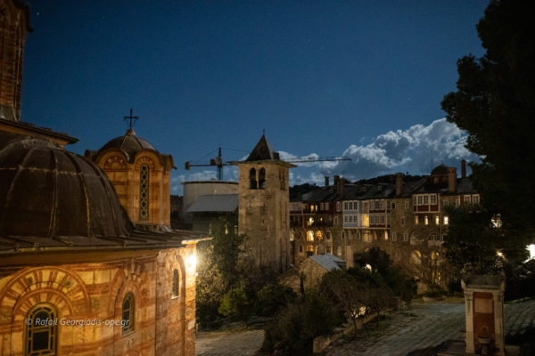 Μέσα σε κλίμα συγκίνησης και κατάνυξης τελείται αυτήν την ώρα ιερά αγρυπνία για την μεγάλη Δεσποτική εορτή των Θεοφανείων στην Ιερά Μεγίστη Μονή Βατοπαιδίου.