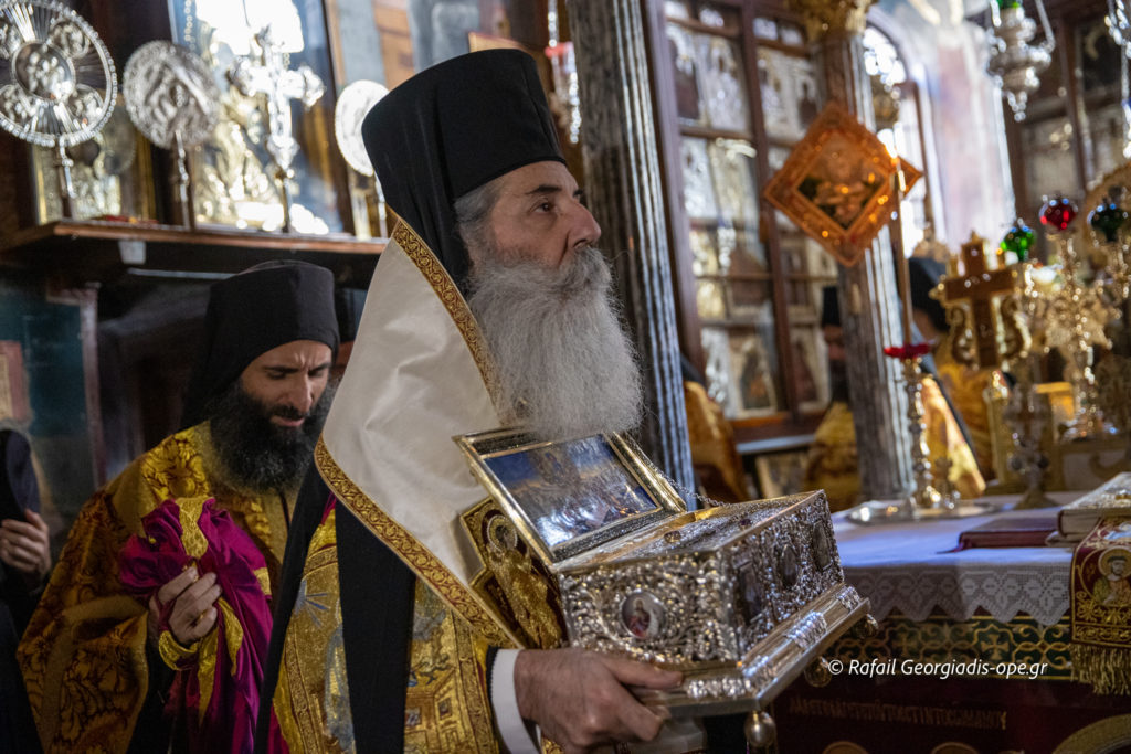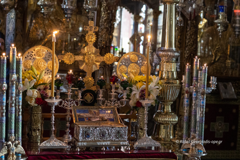 Η Αγία Ζώνη τοποθετήθηκε στο κέντρο του Καθολικού προς προσκύνηση και αγιασμό των πατέρων και των πιστών που προσήλθαν στην Μονή για την πανήγυρη.