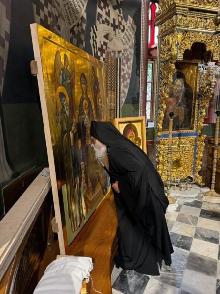 Ο Γέροντας Αλέξιος τόνισε ότι οι εικόνες αυτές, οι οποίες έχουν την ευλογία του Αγίου Όρους, προσφέρονται στη Μονή των Σπηλαίων του Κιέβου.
