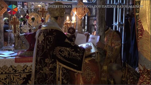 Παρακολουθήστε την εις πρεσβύτερον χειροτονία του Ιεροδιακόνου Παϊσίου Βατοπαιδινού, που τελέσθηκε από τον Σεβασμιώτατο Μητροπολίτη Κορίνθου κ. Διονύσιο κατά την αγρυπνία της εορτής της Καταθέσεως της Τιμίας Ζώνης στην Ι.Μ.Μ. Βατοπαιδίου (2020).