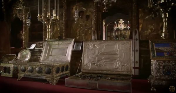 Εκτός αυτών, φυλλάσονται οι κάρες του Αγίου Ιωάννου του Χρυσοστόμου, του Αγίου Γρηγορίου Θεολόγου, Αγίου Στεφάνου Πρωτομάρτυρος, Αγίου Μερκουρίου, Αγίου Μοδέστου, Αγίου Θεοδώρου Στρατηλάτου, Αγίου Ιακώβου του Πέρσου, Σεργίου και Βάκχου, Αρέθα, Αγίου Γερασίμου Παλλαδά, Αγίου Ευδοκίμου του Νεοφανούς, λείψανα του Τίμιου Προδρόμου, Αποστόλου Βαρθολομαίου, Αποστόλου Φιλίππου, Αγίου Παντελεήμονος, του Αγίου Ερμολάου, Αγίου Γρηγορίου Δεκαπολίτου, της Αγίας Μαρίνας, της Αγίας Παρασκευής, της Αγίας Αικατερίνης κ.ά.