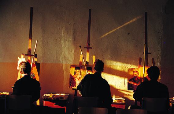 Τα έργα πλαισιώνουν φωτογραφικό και έντυπο υλικό καθώς και κείμενα τεκμηρίωσης τα οποία αναδεικνύουν τον ιστορικό και εκπαιδευτικό ρόλο του σχολείου στην ανάπτυξη των εν Αγίω Όρει ασκουμένων τεχνών.
