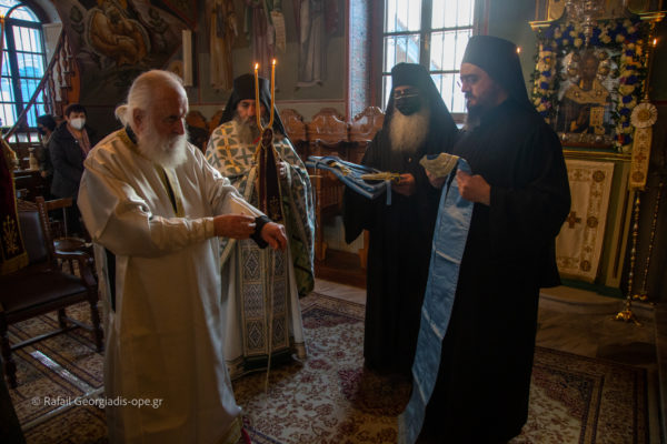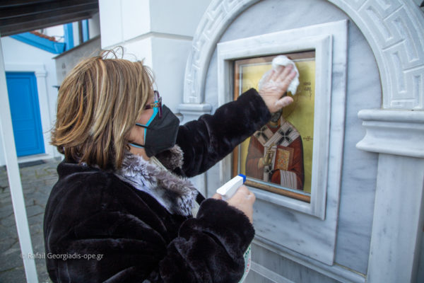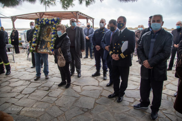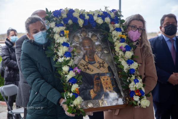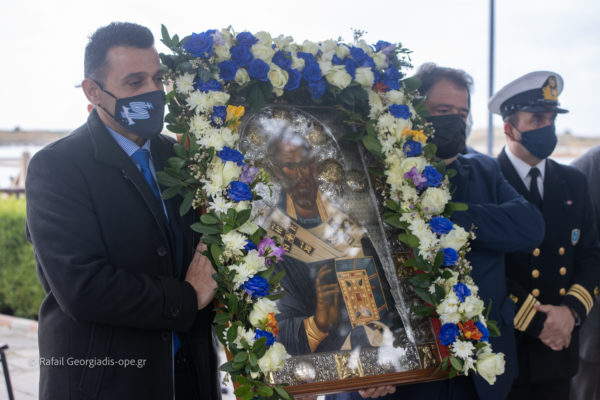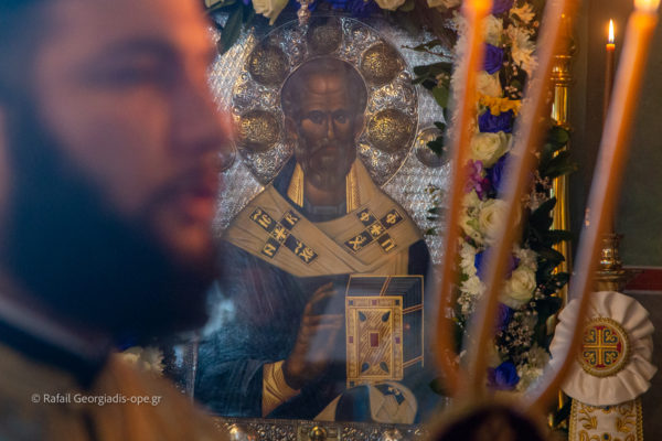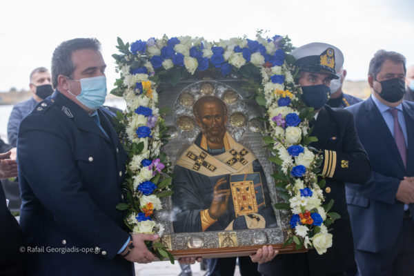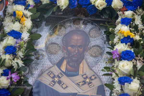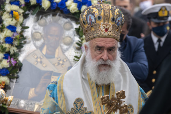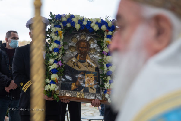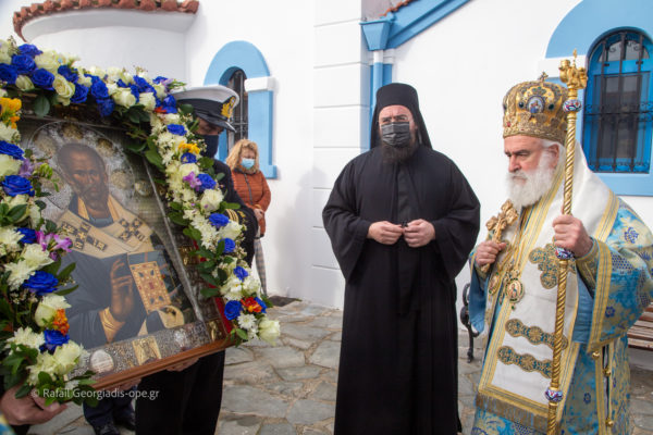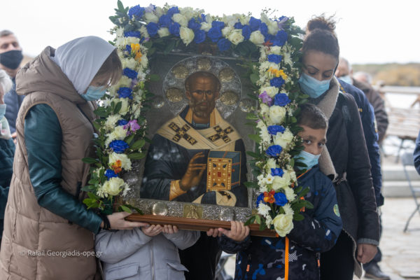 Μετά το τέλος της Θείας Λειτουργίας λιτανεύτηκε στους χώρους της Ι.Μ. η εικόνα του Αγίου Νικολάου, τηρουμένων των υγειονομικών μέτρων για την αντιμετώπιση της πανδημίας.