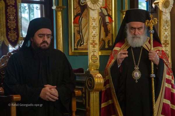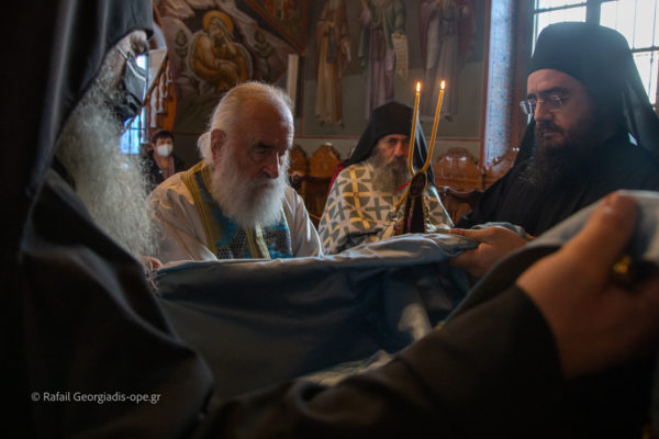 Την πανηγυρική Αρχιερατική Θεία Λειτουργία τέλεσε ο Σεβ. Μητροπολίτης Ξάνθης και Περιθεωρίου κ. Παντελεήμων, πλαισιούμενος από τον Αρχιμ. Σωφρόνιο Γκουτζίνη, Πρωτοσύγκελλο της Ιεράς Μητροπόλεως Ξάνθης και Βατοπαιδινούς πατέρες.
