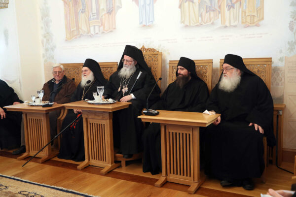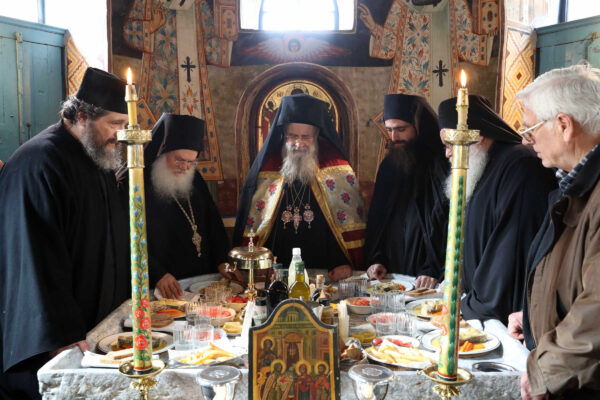 Ακολούθησε το καθιερωμένο Αγιορείτικο κέρασμα στο Συνοδικό της Μονής, όπου ο Γέροντας Εφραίμ ευχαρίστησε τον Σεβασμιώτατο για την επίσκεψη του στη Μονή.