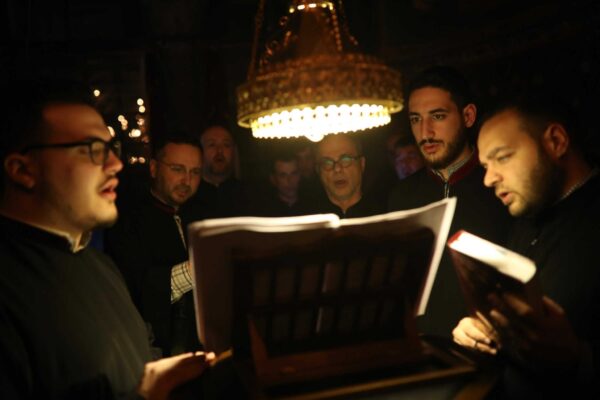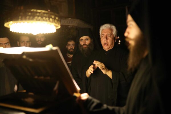 The photos are from the feast of the Presentation of the Lord at the Vatoped Monastery, Mount Athos where a deacon was ordained as priest by Metropolitan Joseph of Prikonisou. On the right sang the "Filathonites" Choir and on the left the parents from Vatopedi led by Prof. Dr. Georgios Konstantinou.