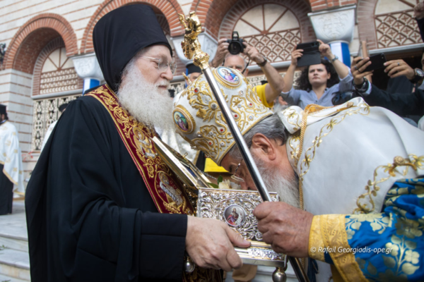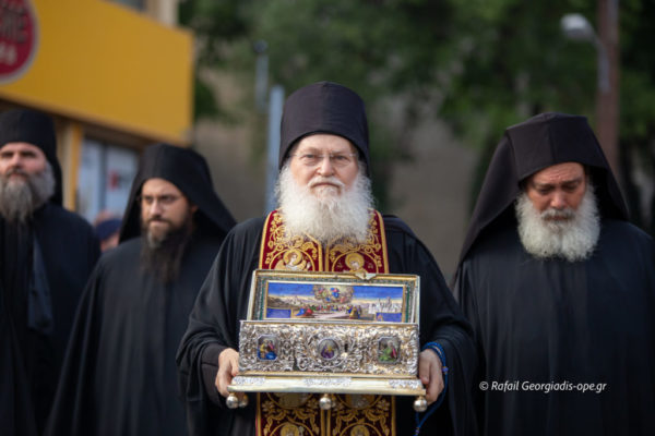 Ο Καθηγούμενος της Ιεράς Μεγίστης Μονής Βατοπαιδίου Γέροντας Εφραίμ μετέφερε στα χέρια του το Ιερό Θεομητορικό κειμήλιο.