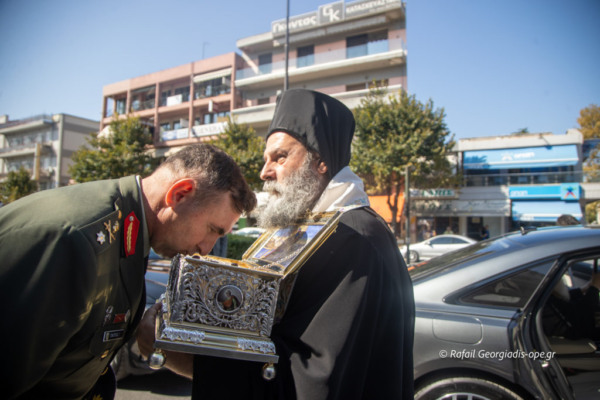 Επόμενος σταθμός της Αγίας Ζώνης στην Κοζάνη ήταν η έδρα της 9ης Ταξιαρχίας Πεζικού όπου προσκύνησαν στελέχη και οπλίτες με τον Διοικητή, Ταξίαρχο κ. Κοσμά Καλμανίδη να ευχαριστεί τον Καθηγούμενο Γέροντα Εφραίμ για την ευλογία η Αγία Ζώνη να βρεθεί στο στρατόπεδο.