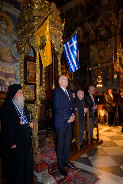 Αυτό άλλωστε τόνισε και κατά την αντιφώνησή του στο πλαίσιο της υποδοχής του στον Ιερό Ναό Πρωτάτου στις Καρυές, απευθυνόμενος στους αντιπροσώπους, μέλη της Ιεράς Κοινότητας του Αγίου Όρους. Αρχικά ο Νίκος Δένδιας εξέφρασε εγκάρδιες ευχαριστίες και τη βαθύτατη ευγνωμοσύνη του «για τη συγκινητική παρουσία και τη συμμετοχή» τους στην υποδοχή του. Επίσης, ζήτησε «ως ταπεινός προσκυνητής», όπως είπε, τις ευχές και τις προσευχές τους και μετέφερε, ως καθ’ ύλην αρμόδιος υπουργός για την Αθωνική Πολιτεία, «τον σεβασμό και την απεριόριστη αγάπη του πρωθυπουργού και των μελών της κυβέρνησης, των οποίων το ενδιαφέρον για το Άγιο Όρος είναι μεγάλο και διαρκές». «Εσείς, Άγιοι Πατέρες, οι οποίοι συνεχίζετε την ιστορική πορεία αυτής της μοναδικής στην Οικουμένη Μοναστικής Πολιτείας με ιδιαίτερη προσφορά, με προθυμία, με θυσίες, καθώς και με πρωτοφανή συλλογικότητα, είστε απολύτως δικαιολογημένοι να αναμένετε τη συνεργασία, αρωγή και συμπαράσταση από τους εκάστοτε κρατούντες στην Ελληνική Πολιτεία» προσέθεσε.