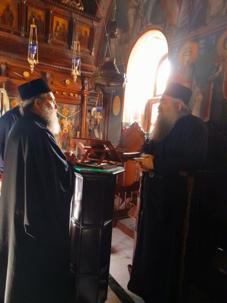 Στην συνέχεια επισκέφθηκε τον ασθενούντα κληρικό της Ιεράς Μητροπόλεως Παν. Αρχιμ. Αναστάσιο Τοπούζη Γέροντα του ιστορικού Κελλίου Τιμίου Προδρόμου Διονυσίου του εκ Φουρνά και τον υποτακτικό του Παν. Αρχιμ. Διονύσιο Βάραγκα που πρόσφατα χειροτόνησε εις Διάκονο και Πρεσβύτερο. Ευχήθηκε τα δέοντα και διαβεβαίωσε τον Γέροντα ότι η Ιερά Μητρόπολη είναι πάντοτε στη διάθεσή του.