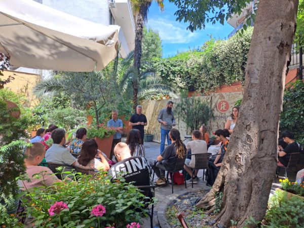 Οι φιλοξενούμενοι ξεναγήθηκαν στην έκθεση φωτογραφίας No Woman’s Land με ιστορικές φωτογραφίες από την αποστολή τριών περιηγητών – καλλιτεχνών από το Princeton στο Άγιον Όρος και τα Μετέωρα του 1929, και ακολούθως ενημερώθηκαν για το έργο και τις δραστηριότητες του φορέα.