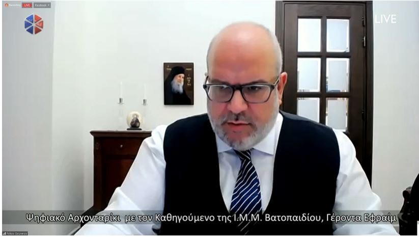Για την αξία της πνευματικότητας, αλλά και της συνεχούς άσκησης ώστε να επιτύχουμε τη Χάρη του Αγίου Πνεύματος μίλησε ο Γέροντας Εφραίμ ο Βατοπαιδινός στο Ψηφιακό Αρχονταρίκι με τους φίλους του “Bizanticons Arts” Store στο Βουκουρέστι που διοργάνωσε το απόγευμα της Τρίτης 16 Μαϊου το διαδικτυακό περιοδικό «ΠΕΜΠΤΟΥΣΙΑ».
