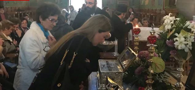 Πλησίασε την Αγία Ζώνη ταπεινά όπως όλοι και με δάκρια στα μάτια προσκύνησε το Ιερό κειμήλιο της Παναγίας. Δε μπορούσε να κρατηθεί και ξέσπασε σε λυγμούς αφού την κόρη της όπως μας είπε η ίδια την οφείλει στην Παναγία.