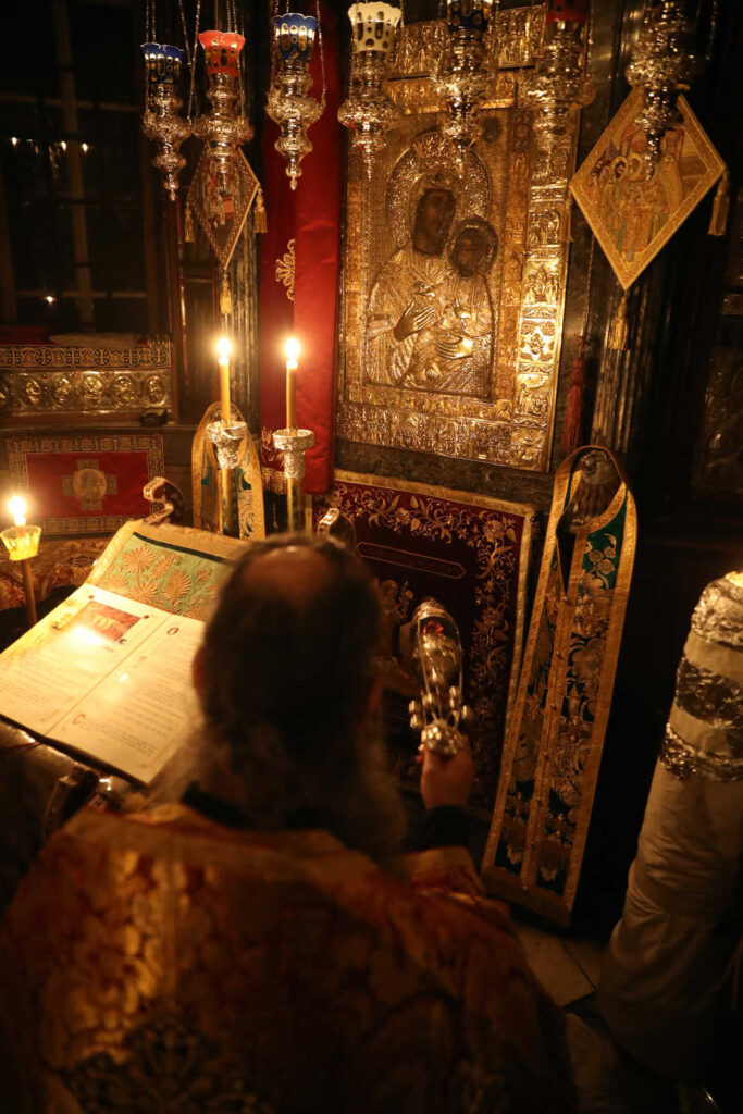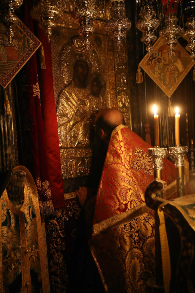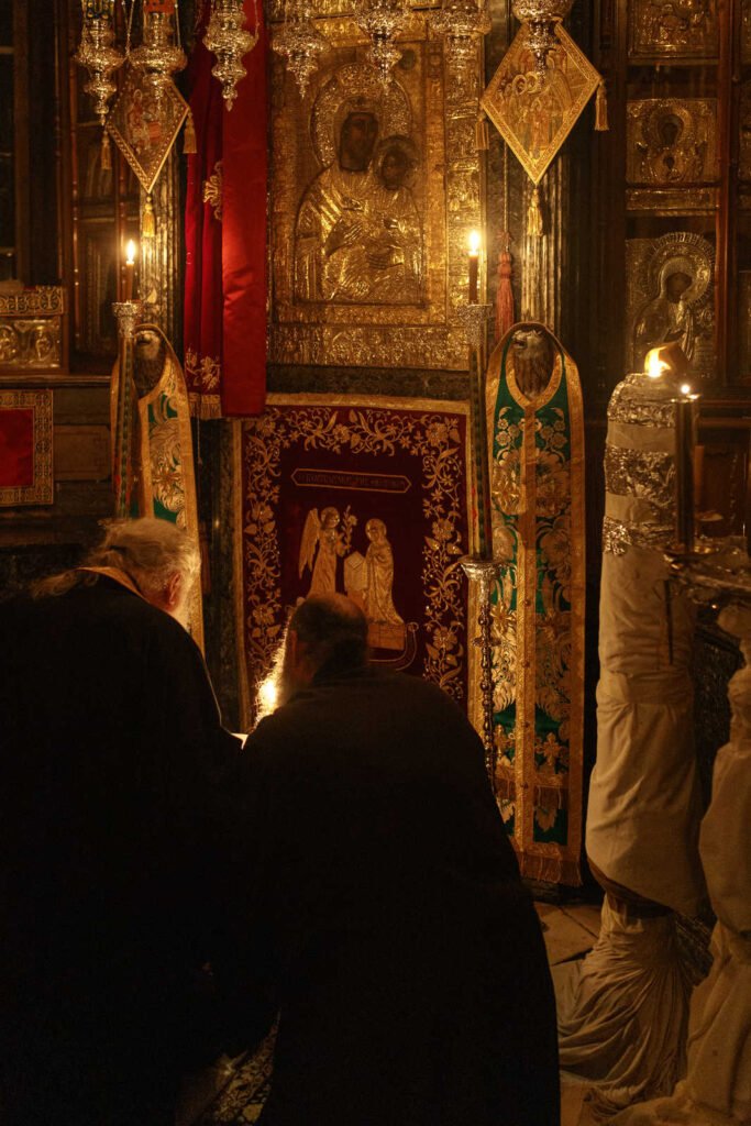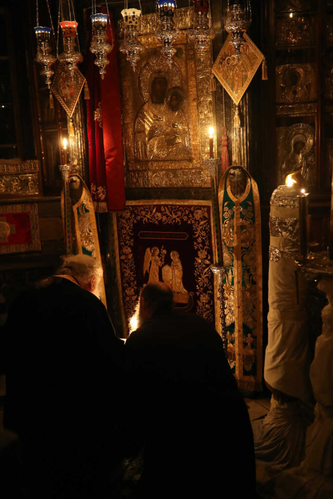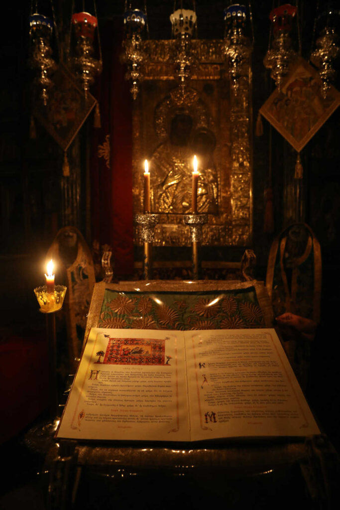 Την κατανυκτική Ακολουθία τέλεσε ο Καθηγούμενος της Μονής Γέροντας Εφραίμ, ο οποίος απηύθυνε ικετήρια προσευχή προς της Υπεραγία Θεοτόκο για την κατάπαυση της πανδημίας του κορωνοϊού.
