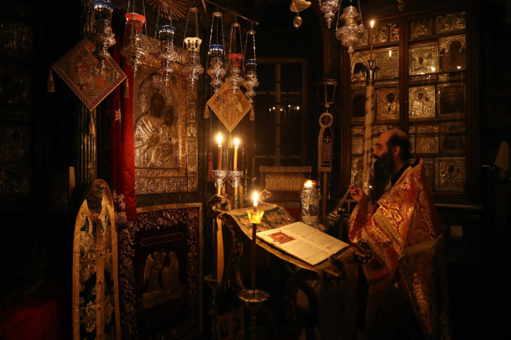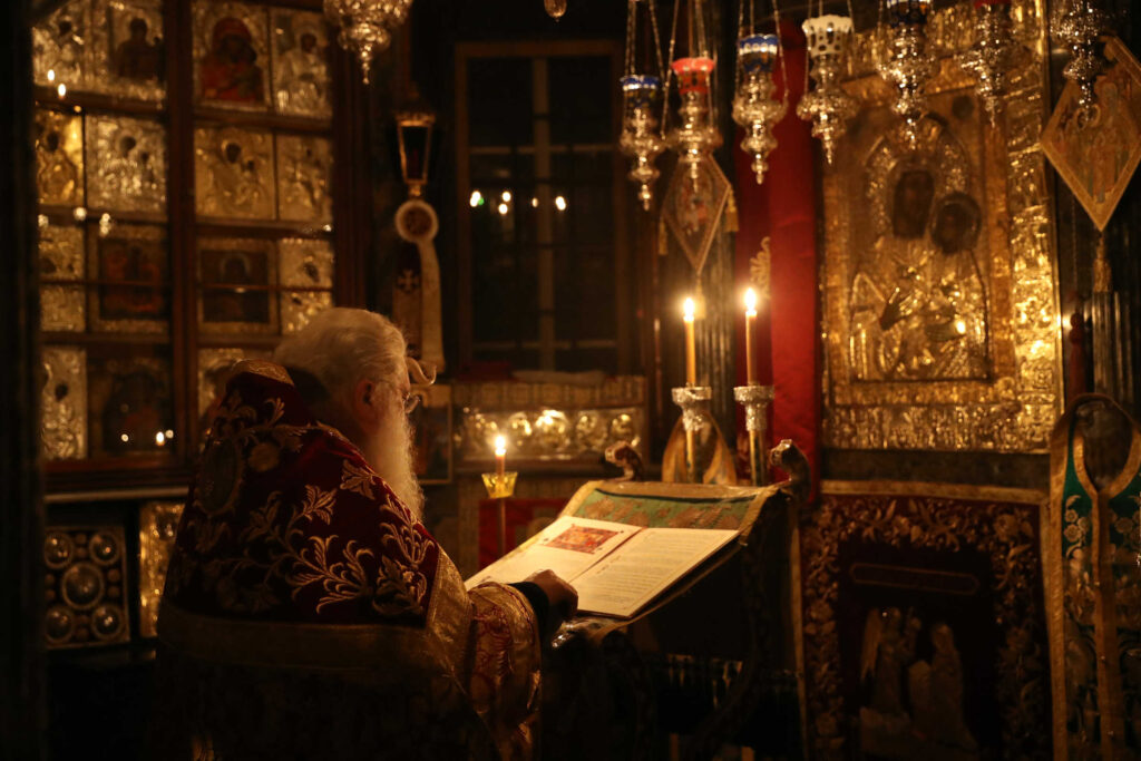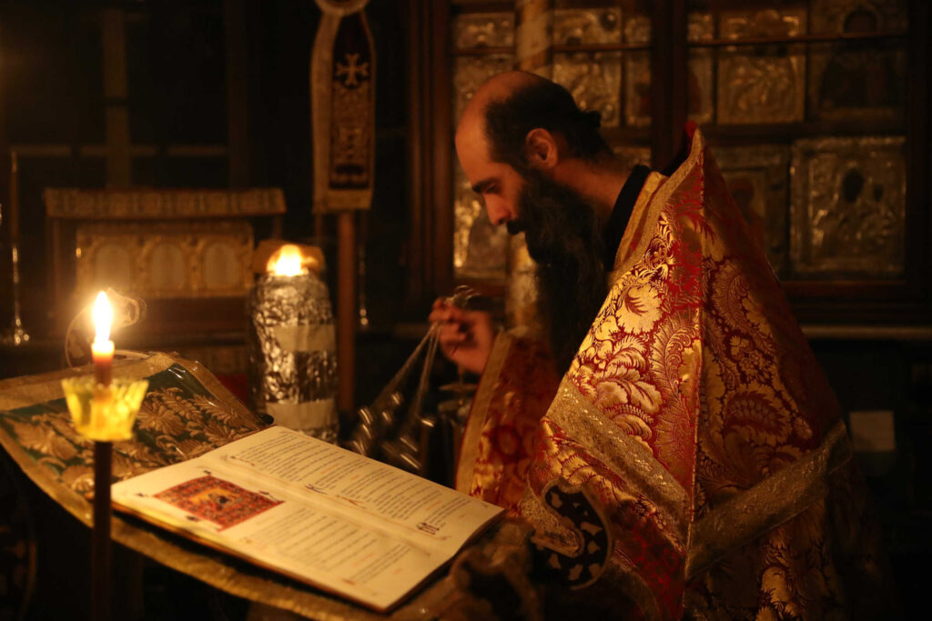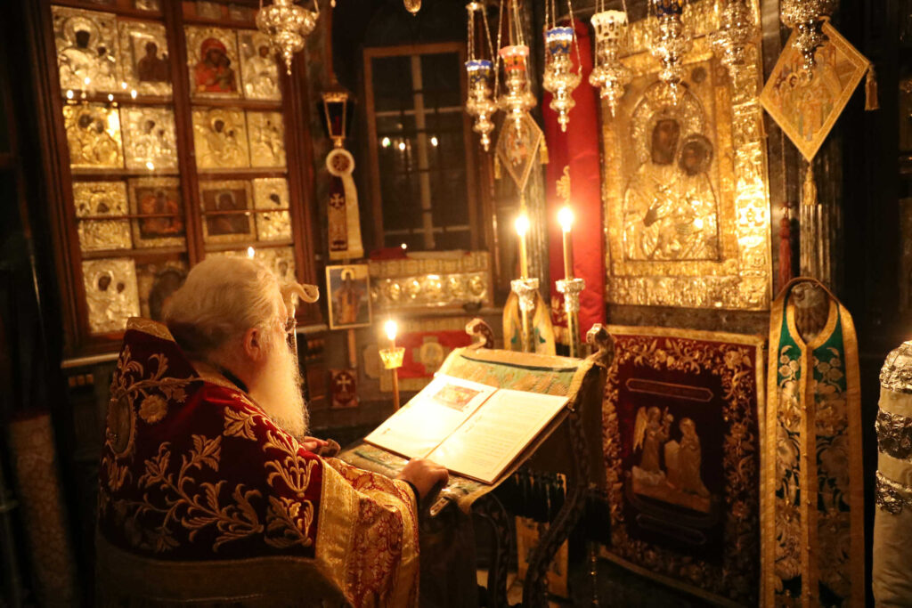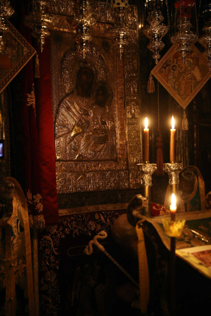 Την κατανυκτική Ακολουθία τέλεσε ο Καθηγούμενος της Μονής Γέροντας Εφραίμ, ο οποίος απηύθυνε ικετήρια προσευχή προς της Υπεραγία Θεοτόκο για την κατάπαυση της πανδημίας του κορωνοϊού.