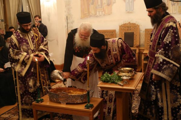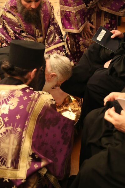 Έλαβε χώρα το τελετουργικό της Ακολουθίας του Νιπτήρος στην Ιερά Μεγίστη Μονή Βατοπαιδίου υπό του Καθηγουμένου της Ιεράς αγιορείτικης Μονής Αρχιμ. π. Εφραίμ. Σύσσωμη η Βατοπαιδινή αδελφότητα παρηκολούθησε τον Καθηγούμενο κατά την νήψη των ποδών ως ορίζει η παράδοση.