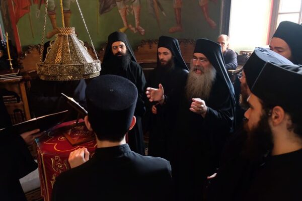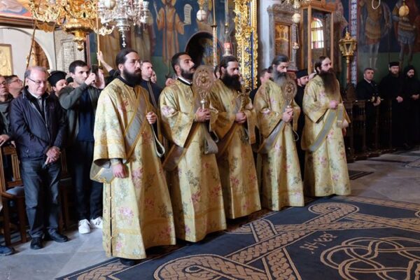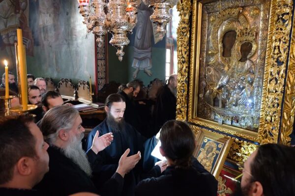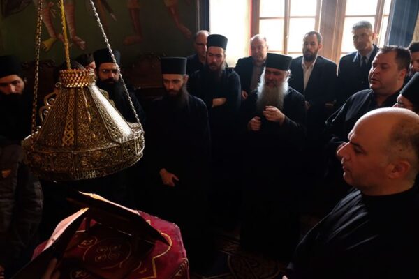 Στην Ιερά Μονή παρευρέθηκαν ο Υπουργός Μακεδονίας – Θράκης κ. Θεόδωρος Καράογλου και ο Αναπληρωτής Διοικητής του Αγίου Όρους, κ. Αρίστος Κασμίρογλου.