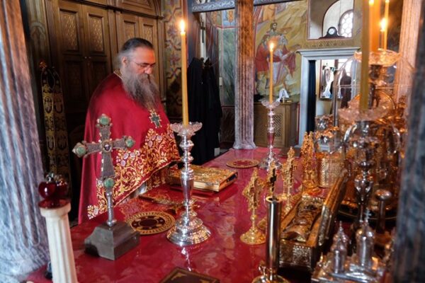 Το Καθολικό ήταν κατάμεστο από εκατοντάδες πιστούς, οι οποίοι έσπευσαν να τιμήσουν τον Άγιο.