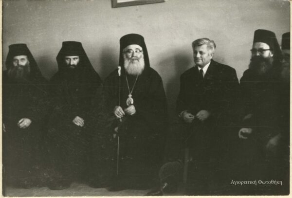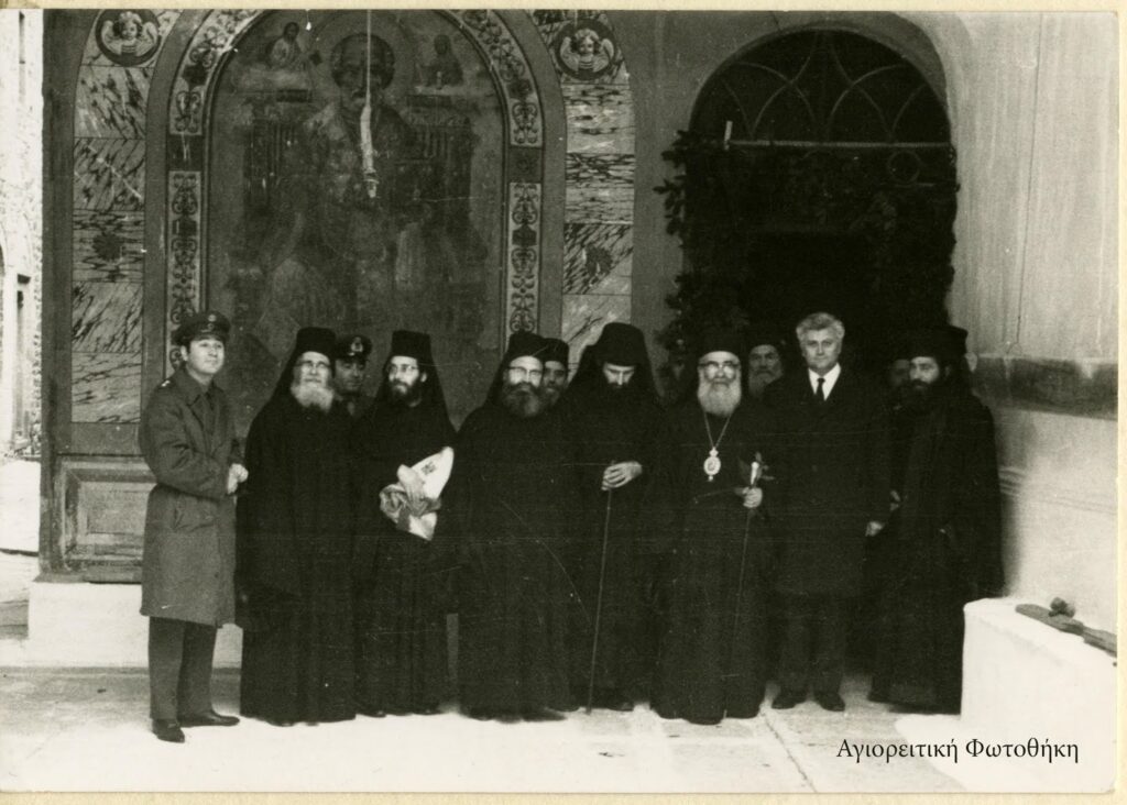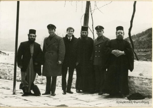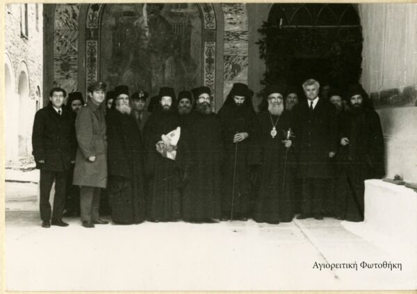 Έτος 1968 – Η ενθρόνιση του Καθηγουμένου της Μονής Σταυρονικήτα Αγίου Όρους, αρχιμ. Βασιλείου (4 φωτ., δωρεά ιατρού Αλέξ. Μακαρώνα) σε ιστορικό, φωτογραφικό αφιέρωμα εκ μέρους της ΑΓΙΟΡΕΙΤΙΚΗΣ ΦΩΤΟΘΗΚΗΣ. Στη φώτο, ως άνω: Από αριστερά: Αλέξιος μον. Ιβηρίτης, Καλλίνικος προηγ. Ιβηρίτης, Κωνσταντίνος προηγ. Λαυριώτης, αρχιμ. Βασίλειος, αρχιεπ. Αυστραλίας Ιεζεκιήλ, Σταύρος Παπαδάτος (Πολιτικός Διοικητής), Ιερόθεος μον. Σταυρονικητιανός.