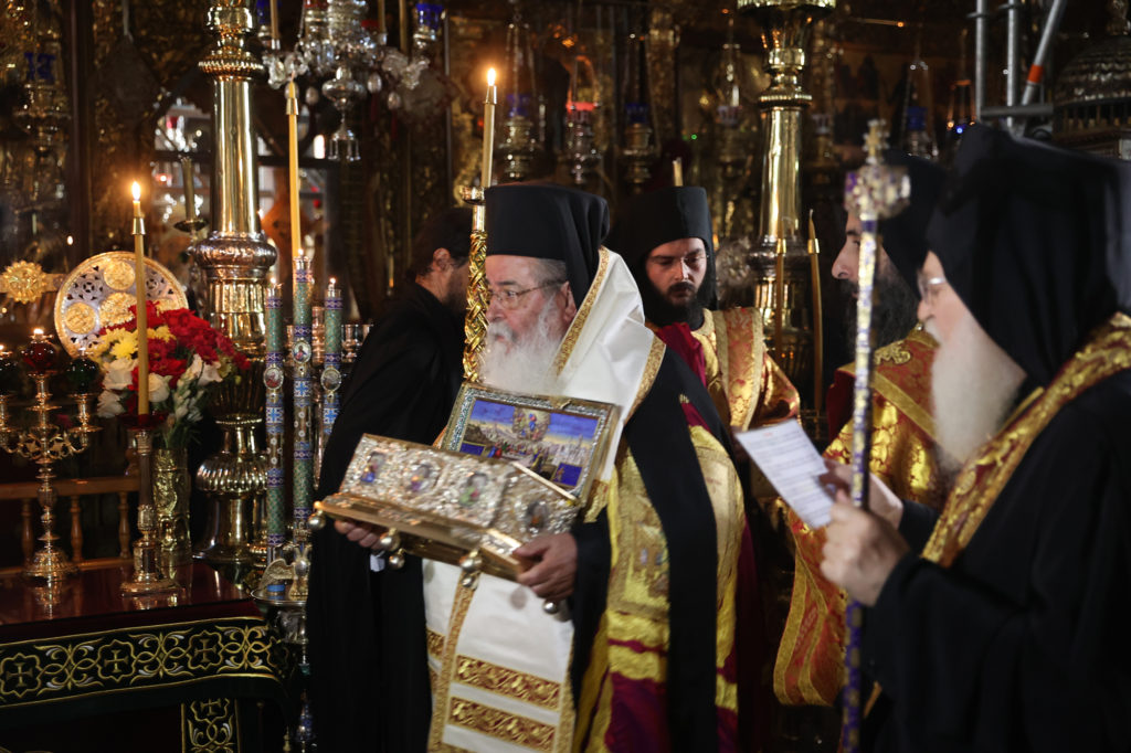 Αργότερα, εκκίνησε ο Πανηγυρικός Εσπερινός στο Καθολικό της Μονής και η ολονύχτια Αγρυπνία. Κατά τη διάρκεια της Αγρυπνία στο Συνοδικό της Μονής παρατέθηκε το καθιερωμένο αγιορείτικο κέρασμα. Ο Μητροπολίτης κ. Παύλος και ο Καθηγούμενος Γέρων Εφραίμ απηύθυνα εόρτιο λόγο προς τους παρευρισκομένους πατέρες και προσκυνητές.
