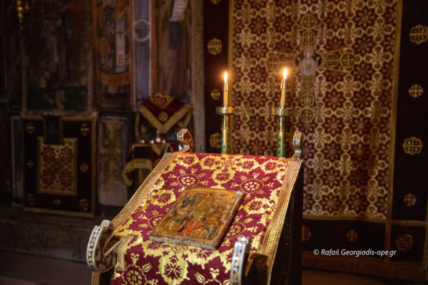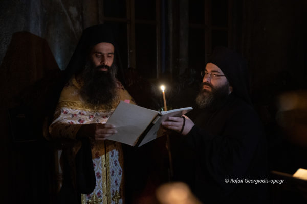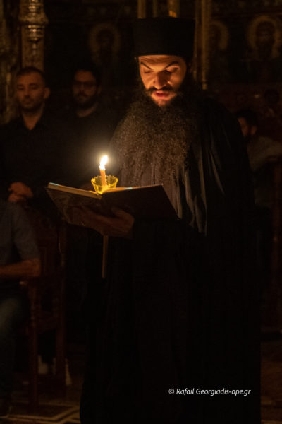 Αυτήν την ώρα συνεχίζεται η αγρυπνία και αύριο το πρωί θα τελεστεί η πανηγυρική Αρχιερατική Θεία Λειτουργία κατά την διάρκεια της οποίας θα τελεστεί η εις διάκονον χειροτονία του αδελφού της Μονής πατρός Ελισαίου.
