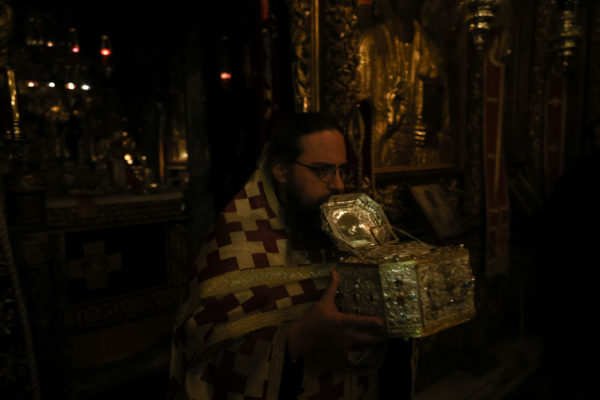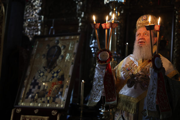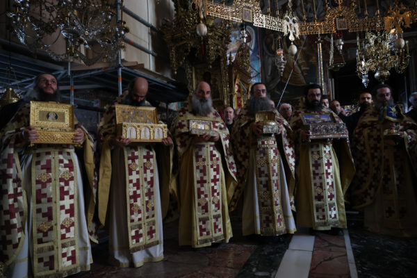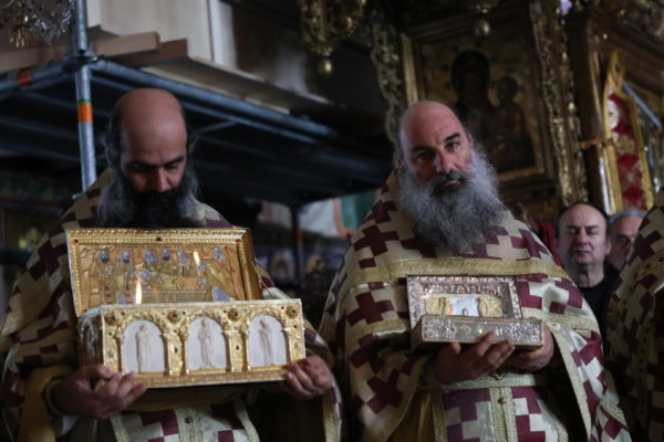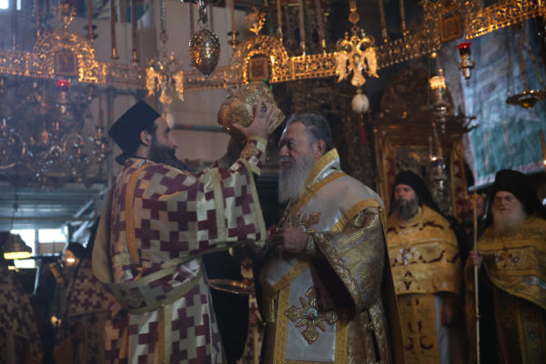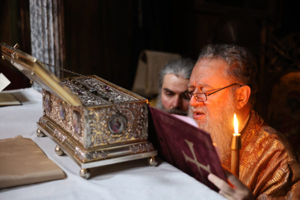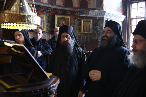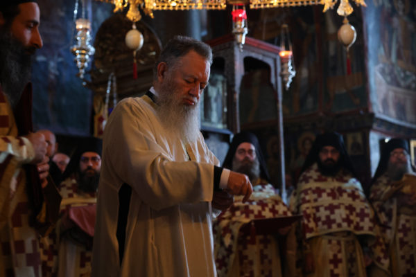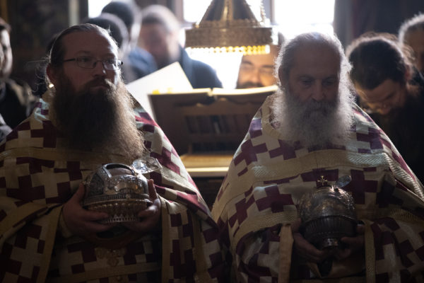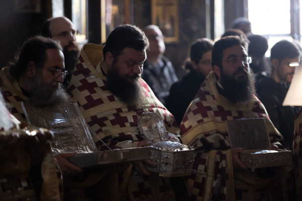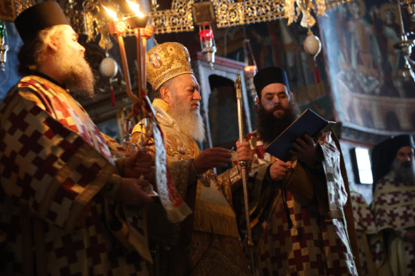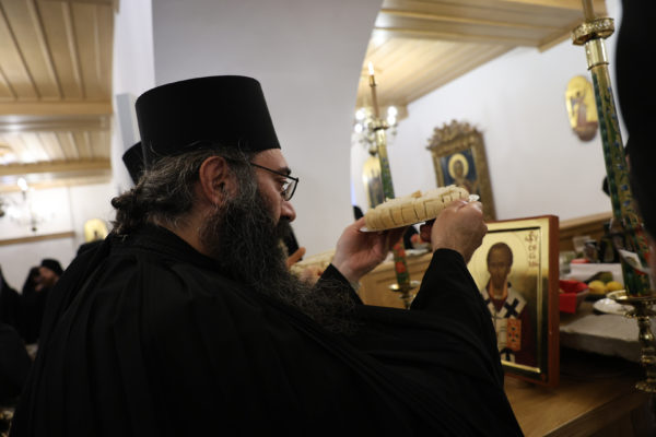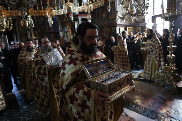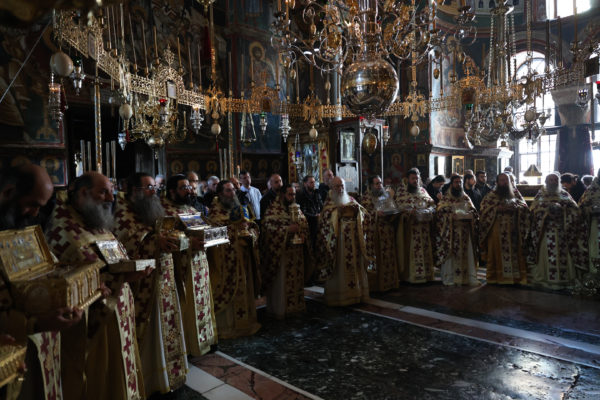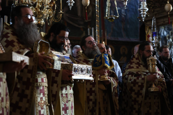 Της ιεράς πανηγύρεως, κατόπιν πρόσκλησης του Καθηγουμένου της Ι.Μ.Μ. Βατοπαιδίου Γέροντος Εφραίμ, προεξήρχε ο Σεβ. Μητροπολίτης Χαλκίδος κ. Χρυσόστομος.