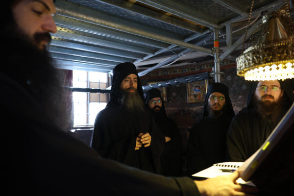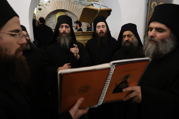 Τους ύμνους απέδωσαν Βατοπαιδινοί Πατέρες.