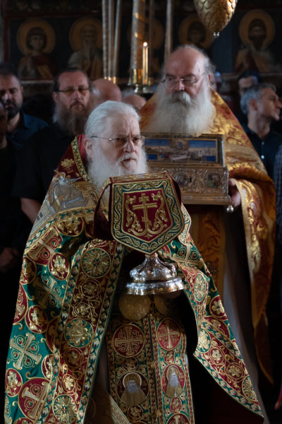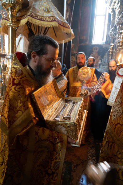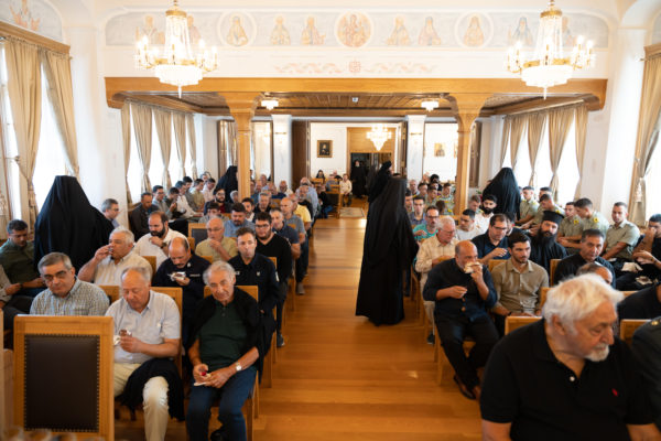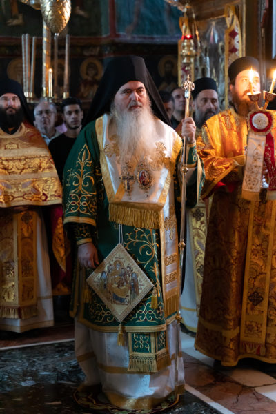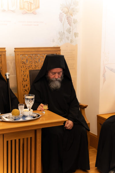 Της Ευχαριστιακής Συνάξεως προεξήρχε ο Μητροπολίτης Πατρών κ. Χρυσόστομος πλαισιούμενος από τον Μητροπολίτη Νέας Κρήνης και Καλαμαριάς κ. Ιουστίνο, τον Καθηγούμενο της Μονής Γέροντα Εφραίμ, πατέρες της Μονής και άλλους ιερείς και ιερομονάχους οι οποίοι προσήλθαν στην Μονή για να τιμήσουν την μνήμη του Οσίου Πατρός Ιωσήφ του Ησυχαστού και να προσκυνήσουν τα χαριτόβρυτα άγια λείψανά του.