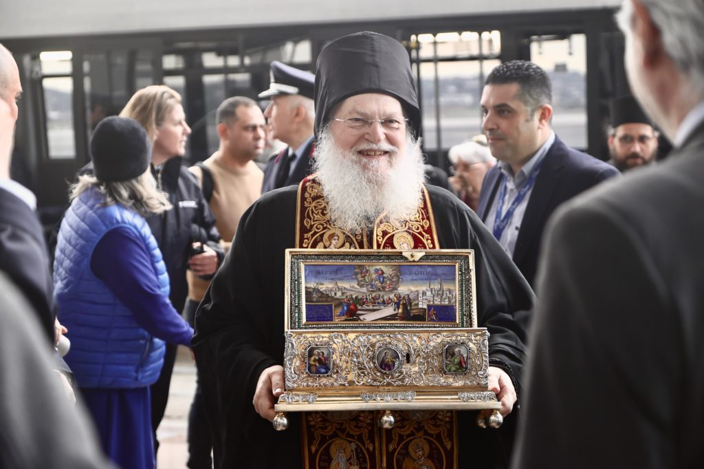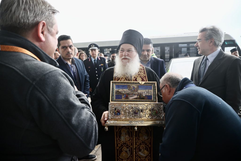 Πλήθος κόσμου στο αεροδρόμιο έσπευσε να προσκυνήσει το Θεομητορικό κειμήλιο, το οποίο στη συνέχεια αναχώρησε με προορισμό την Ιερά Μεγίστη Μονή Βατοπαιδίου Αγίου Όρους, όπου αποθησαυρίζεται, συνοδευόμενο από τον Καθηγούμενο της Μονής Γέροντα Εφραίμ.