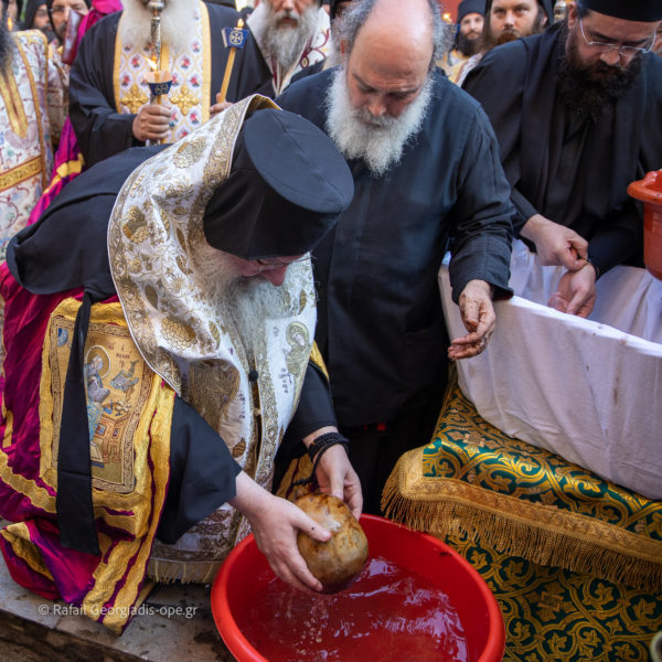 Στο ως άνω φωτογραφικό στιγμιότυπο, η Κάρα του μακαριστού Γέροντος, λίγες στιγμές μετά την ανακομιδή της.